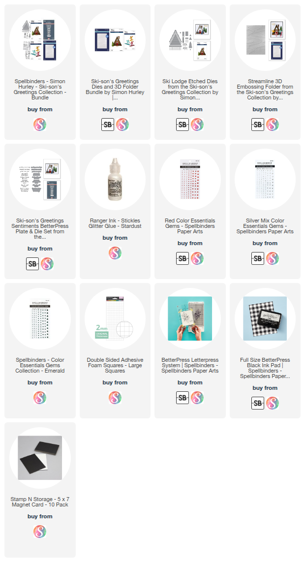 Hi crafty friends! Attention snow bunnies! Simon Hurley is out with a new ski themed collection with Spellbinders called Ski-son's Greetings. This collection features a ski lodge die set, skiers die set, snow tracks 3D embossing folder and sentiments. Check out what I made and scroll down for a complete supply list.