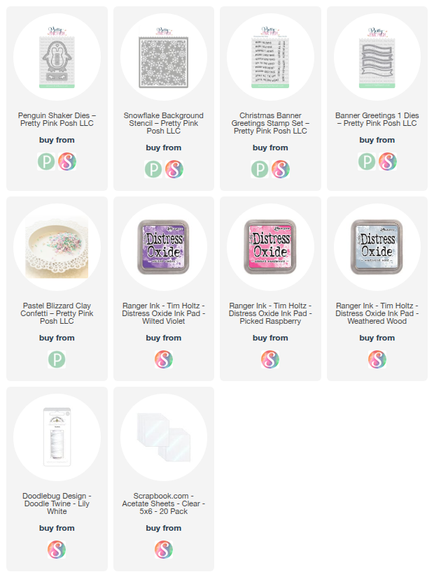 Scroll down for a complete supply list.My card uses the adorable Penguin Shaker die set which is the perfect size to take up most of the card front leaving room for an accent and sentiment. The sentiment is from the Christmas Banner Greetings stamp