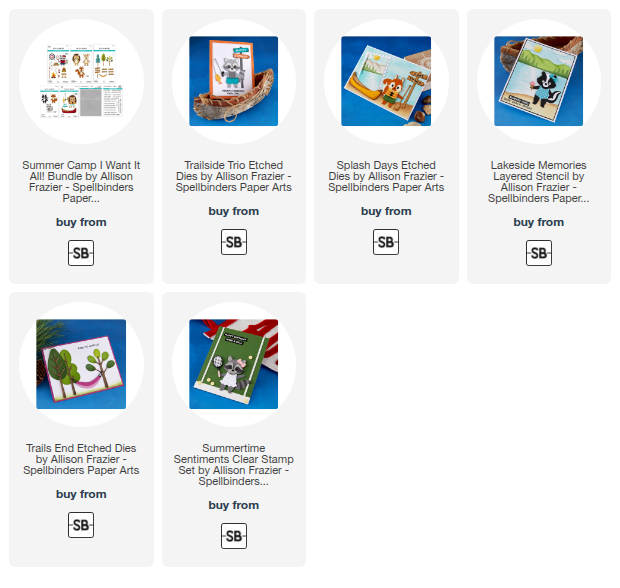 Hi crafty friends! It's release day over at Spellbinders and there are some FABULOUS collections launching! I'm sharing 2 cards using the Summer Camp collection designed by the talented Allison Frazier! This is her first collection and she knocked it out of the park! This adorable camping themed collection features 5 die sets, 1 sentiment stamp set and a scene builder layered stencil set. This collection is PERFECT for all the camping and nature loving friends and family in your life💙
