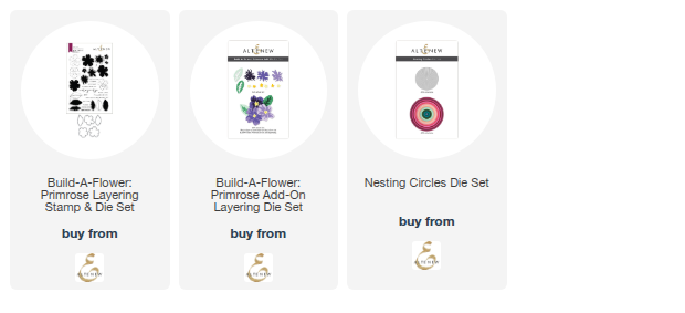 My card uses the Build-A-Flower: Primrose layering stamp set. It is hard to see, but I used the add-on dies for the flower centers.