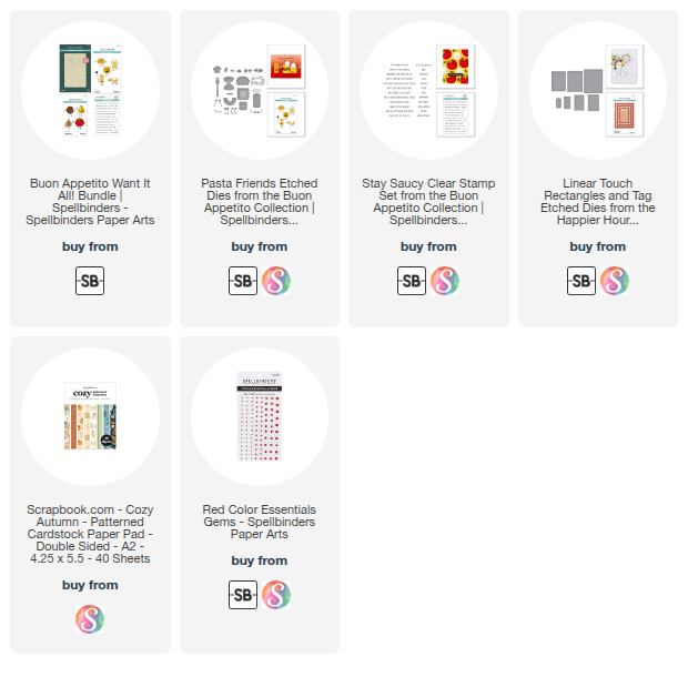 Hi crafty friends! Today I have a super fun card using the adorable Buon Appetito collection! This collection features a pasta and ingredient friends die sets, a sentiment stamp set and a 3D embossing folder. It's full of delicious puns! I started my card with a piece of yellow plaid paper from the A2 Cozy paper pad. I die cut white cardstock with the Linear Touch Rectangle die set and matted it on red cardstock. I die cut the pasta pieces from the Pasta Friends die set with a couple shades of yellow cardstock. I had a blast assembling them with fun legs and arms and some accessories.