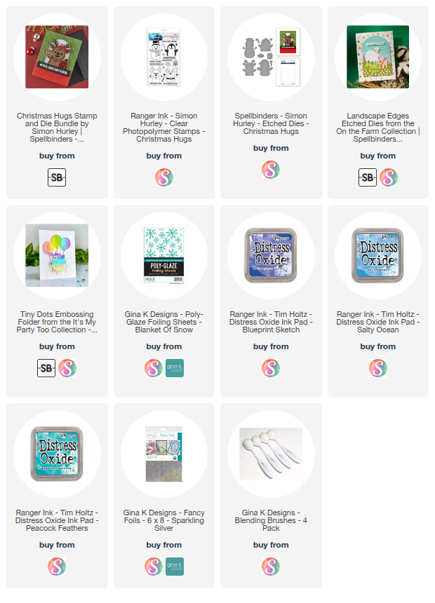 Hi crafty friends! I have a fun snowman card to share today. This cutie is from a stamp/die set designed by Simon Hurley for Spellbinders. And the background uses a Poly-Glaze foil sheet I had in my stash! Scroll down for a list of supplies. To make the background, I used the Poly-Glaze foil sheet called Blanket of Snow from Gina K Designs with the Deco-foil Sparkling Silver. To use these sheets, you need a use a laminator like Gina's Fuse machine or Anna Griffin's Minc. I ink blended the sheet with Distress Oxide Inks listed below. These Poly-Glaze sheets take ink beautifully!The adorable snowman is from the Christmas Hugs stamp and die set and I colored him with Copic markers. I popped him up with foam squares on the Perfect Touch Arches die set then embossed with the Tiny Dots EF.