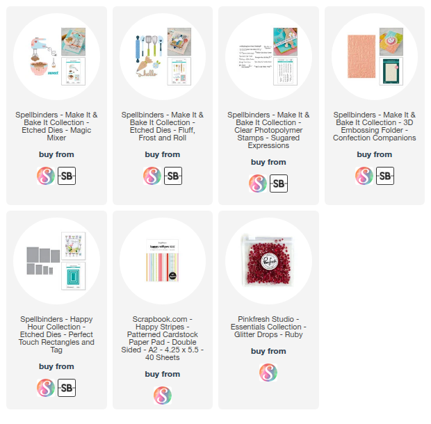 All the elements in these die sets are adorable. The cookie jar, baking utensils, mixer, all of it. All of this collection is still available at both Spellbinders website and Scrapbook.com.