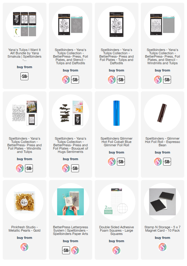 IMPORTANT NOTE: the stencil for the Tulips and Daffodils Press and Foil plate is sold out on both Spellbinders and Scrapbook.com. So at this time the bundle and the I Want It All bundle, so please sign up to be notified when they are back in stock.