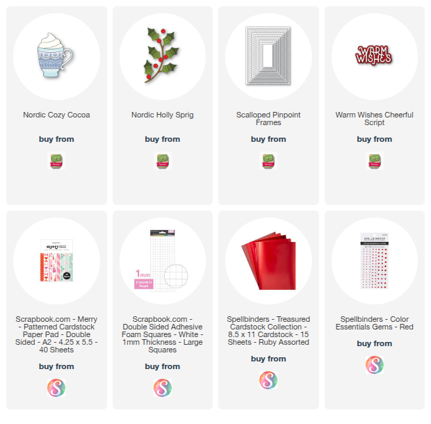 These pretty mugs are from the Nordic Cozy Cocoa die set, the accent holly and berries are from the Nordic Holly Sprig die set and the sentiment is the Warm Wishes Cheerful Script and is such a pretty font!